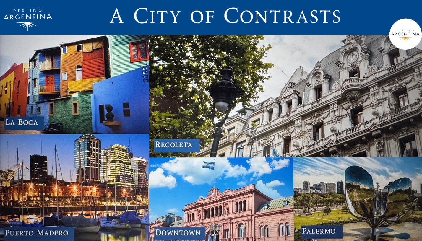 Argentinská metropole je kulturním, ekonomickým i gastronomickým centrem země. Buenos Aires nabízí špičkové hotely, kulturní scénu, tango, designové restaurace i gastronomické zážitky, které jsou ideálním úvodem nebo zakončením cesty po Argentině. Město je díky své infrastruktuře také hlavním uzlem MICE turistiky v zemi.