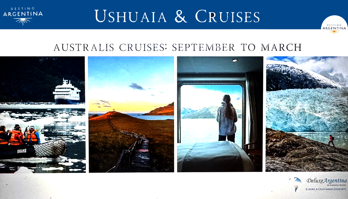 Ushuaia, nejjižnější město světa, je výchozím bodem pro výpravy do Antarktidy i Patagonie. Kombinuje unikátní přírodní scenerie s komfortní infrastrukturou a nabídkou luxusních i expedičních plaveb. Místní partneři Destino Argentina zajišťují lodní expedice, pobytové balíčky, pozemní výlety i kompletní itineráře pro segment adventure & exploration travel.